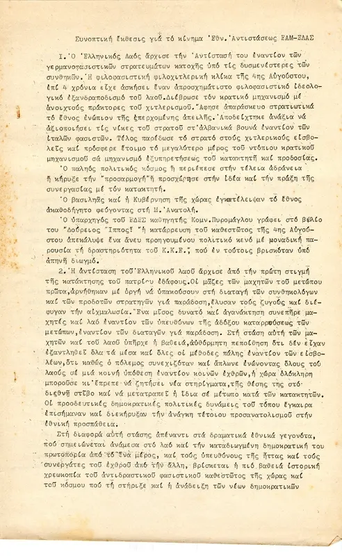 Συνοπτική έκθεση για το κίνημα Εθν. Αντιστάσεως ΕΑΜ-ΕΛΑΣ