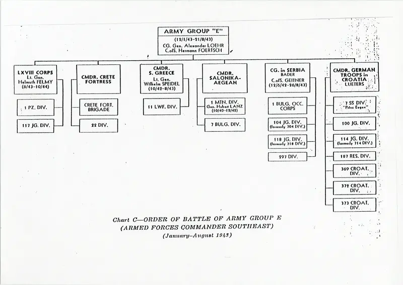 Η ιεραρχία ακι το οργανώγραμμα στης Στρατιάς "Ε" του Γερμανικού Στρατού κατά τη διάρκεια του Β' Παγκοσμίου Πολέμου.