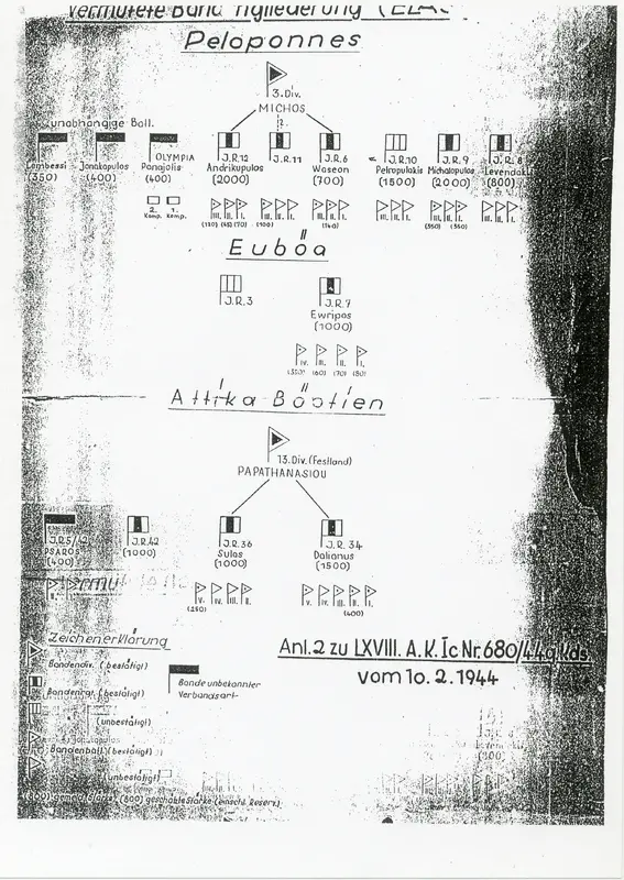 Εκτιμώμενη δύναμη των αντιστασιακών ομάδων στην κατεχόμενη Πελοπόννησο στις αρχές του 1944.
