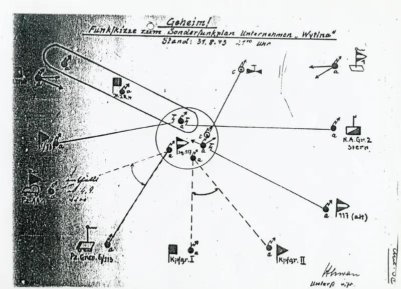 Αντίγραφο εγγράφου που σχετίζεται με ένα στρατιωτικό σχέδιο ασυρμάτου για την Επιχείρηση Βυτίνα" της 117 Μεραρχίας Κυνηγών.